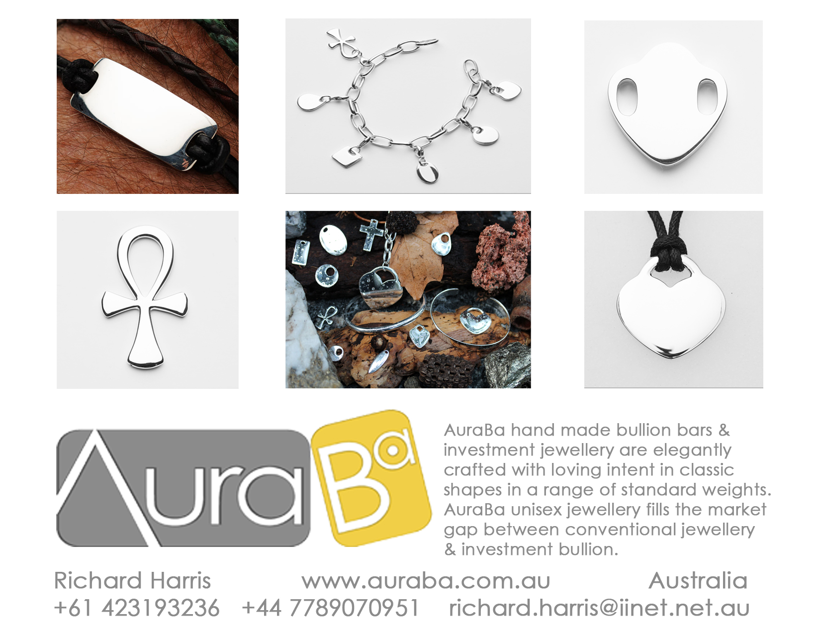 AuraBa hand crafted bullion bars & investment jewellery are made with loving intent in fashionable shapes in a range of standard weights. AuraBa jewellery fills the market gap between conventional jewellery & investment bullion.